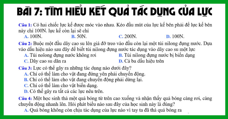 BÀI 7: TÌM HIỂU KẾT QUẢ TÁC DỤNG CỦA LỰC Câu 1: Có hai chiếc lực kế được móc vào