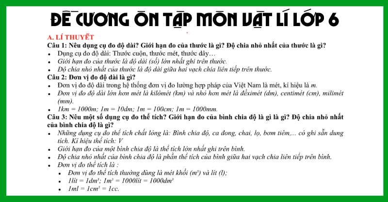 ĐỀ CƯƠNG ÔN TẬP MÔN VẬT LÍ LỚP 6
