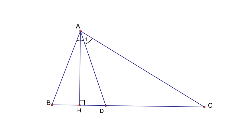Câu 4 (2.5 điểm): Cho tam giác ABC có B ^ = 70 ∘ \widehat{B} = 70^\circ , C ^ = 30 ∘ \widehat{C} = 30^\circ . Tia phân giác của góc A cắt BC tại D. Kẻ AH vuông góc với BC (H ∈ \in BC). a) Tính số đo B A C ^ \widehat{BAC} b) Tính số đo A D H ^ \widehat{ADH}